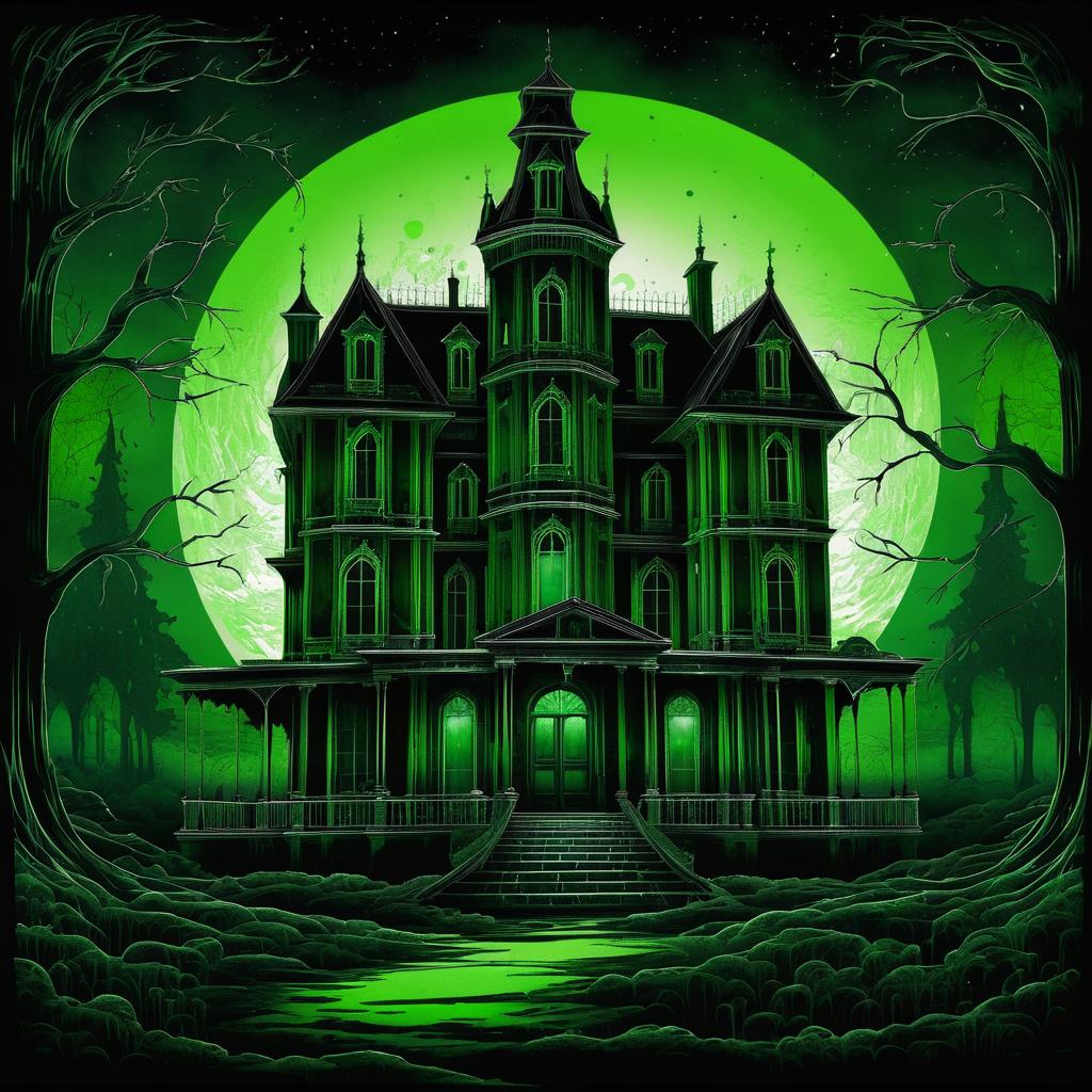 Eerie Green Haunted Mansion Illustration
