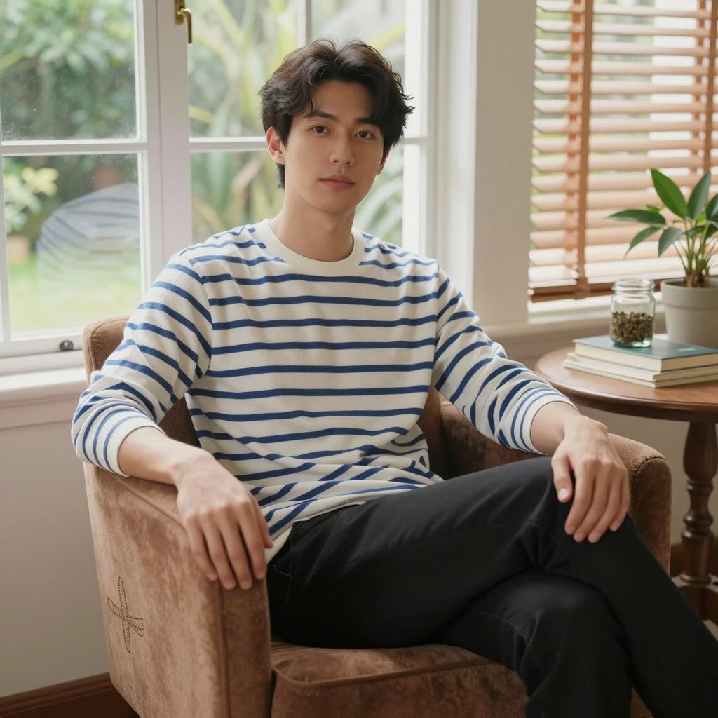 Relaxed Young Man in Dim Lighting