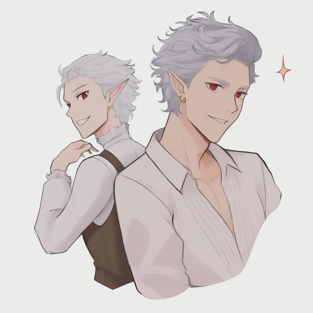 Astarion, baldur's gate, 1boy, red eyes, short hair, white hair, grey hair, white shirt, vampire, elf, by artist lazyprocrastinator, leet