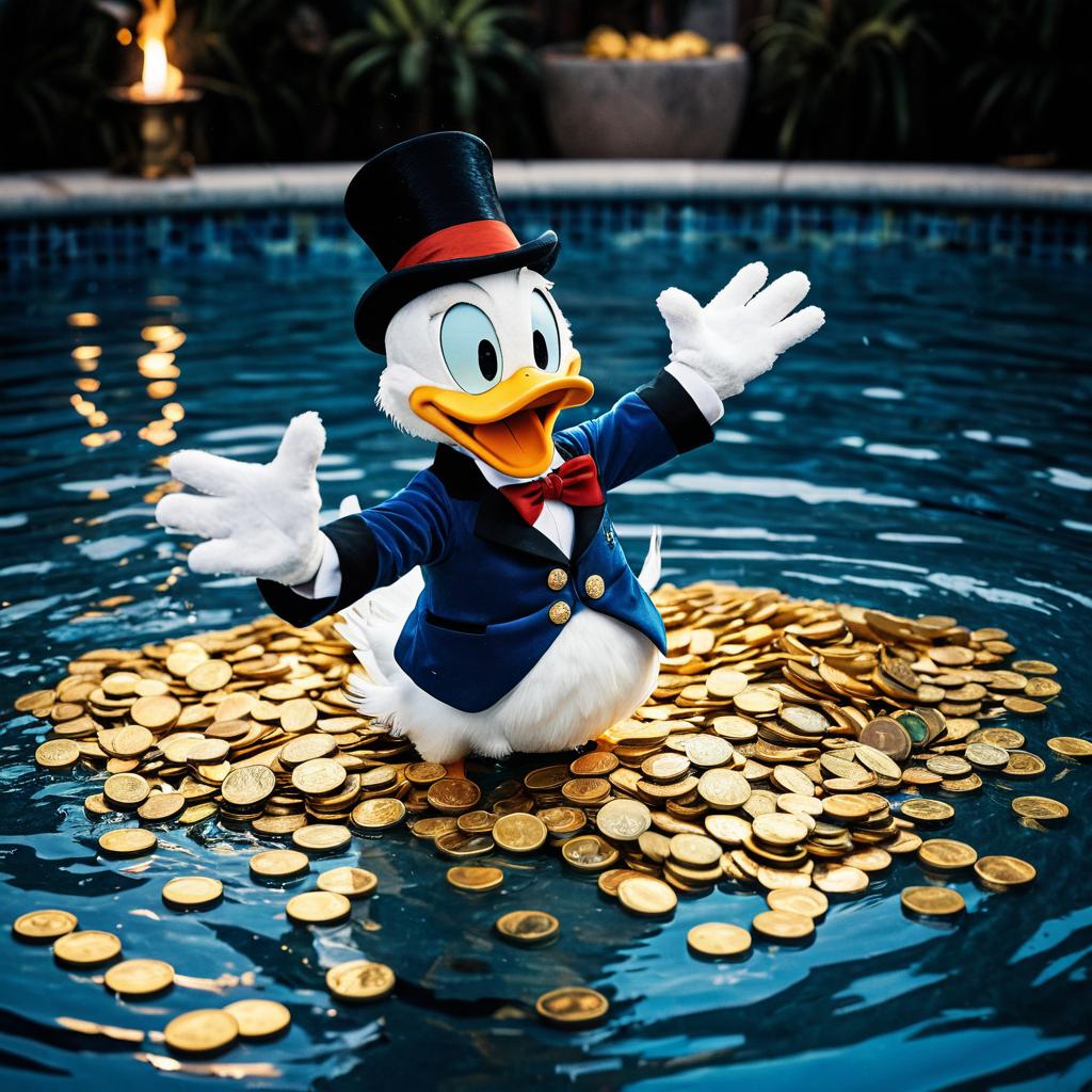 Scrooge McDuck Surrounded by Bitcoin Coins