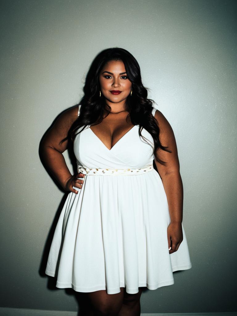 Plus Size Plus Lace Dress, a woman in a white dress posing for a picture --sref 1393