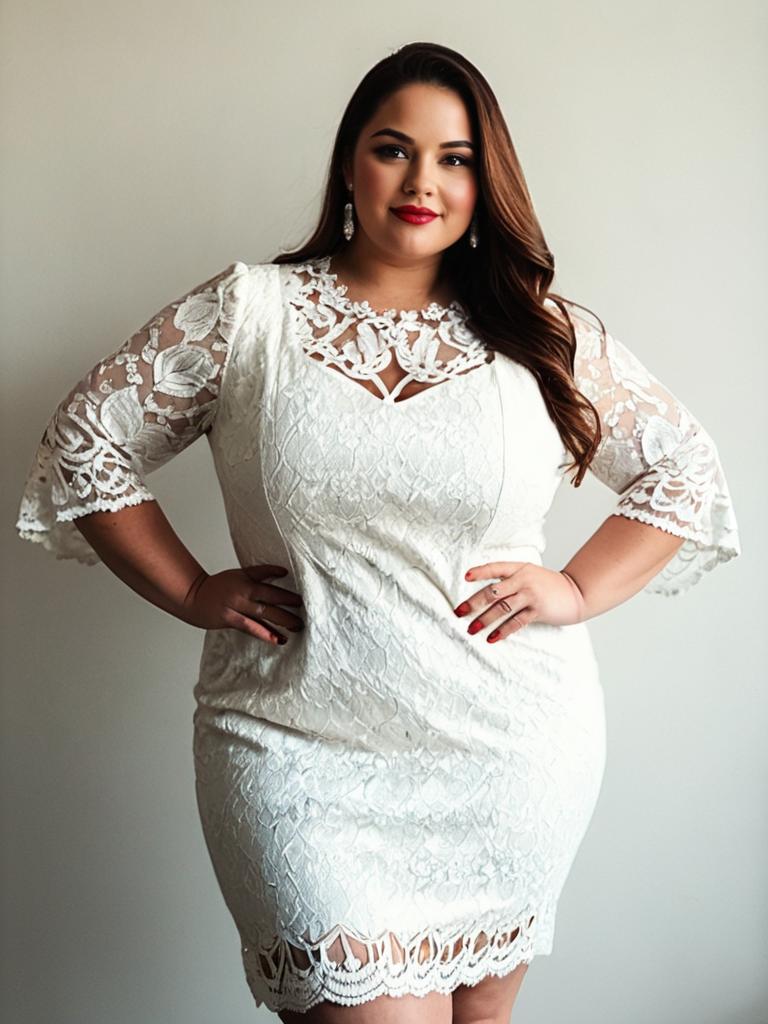 Plus Size Woman in White Lace Dress