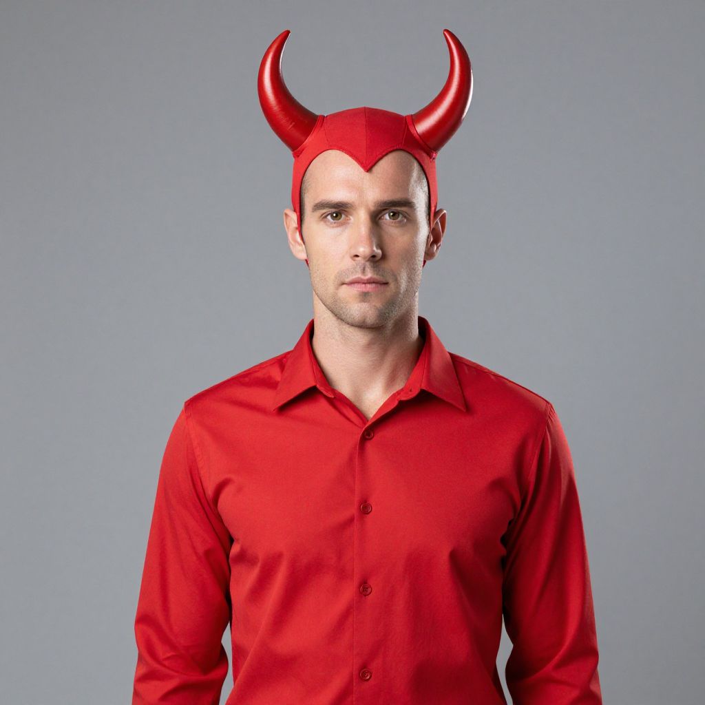 "historical jester costume, 1boy, male focus, hat, horns, hands on own hips, standing, looking at viewer, facial hair, long sleeves, checkered clothes, blurry, full body, pants, red headwear, outdoors, mustache, blurry background, boots Realistic photo of casual sexy person with pretty face"