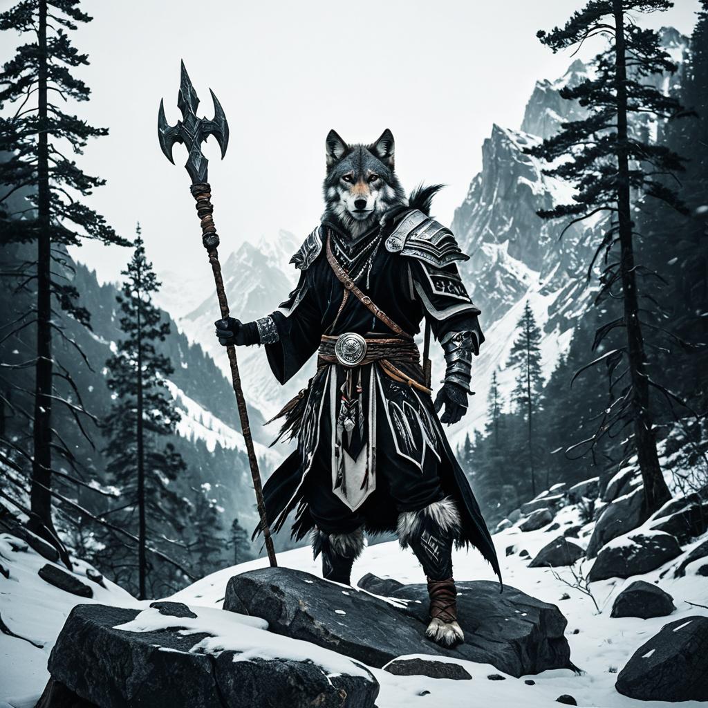 Heroic Wolf Mage in Mystical Mountains