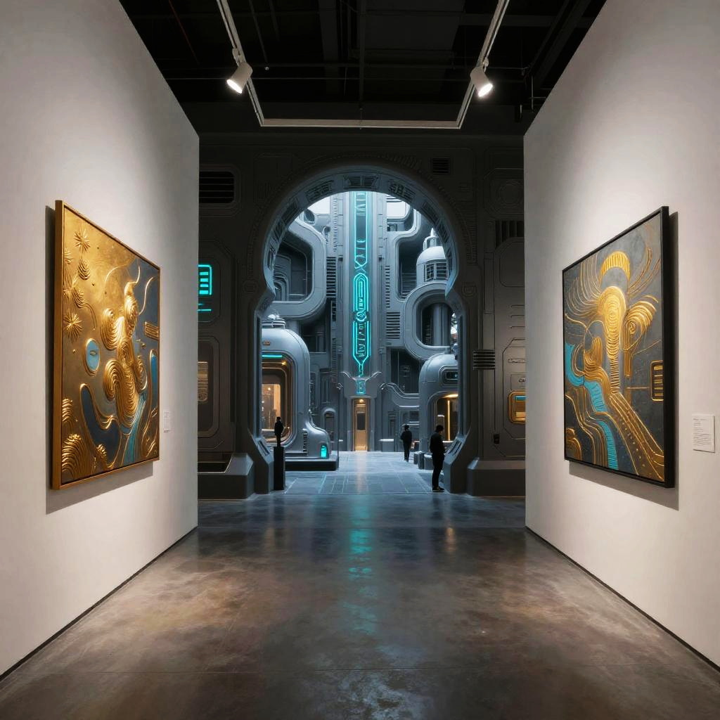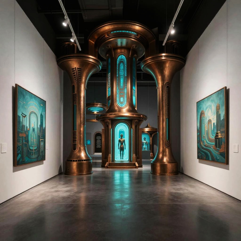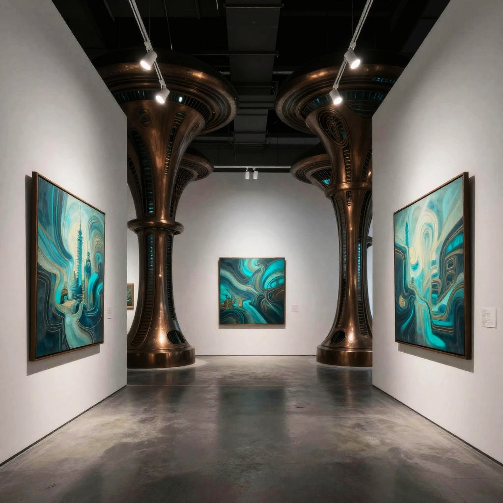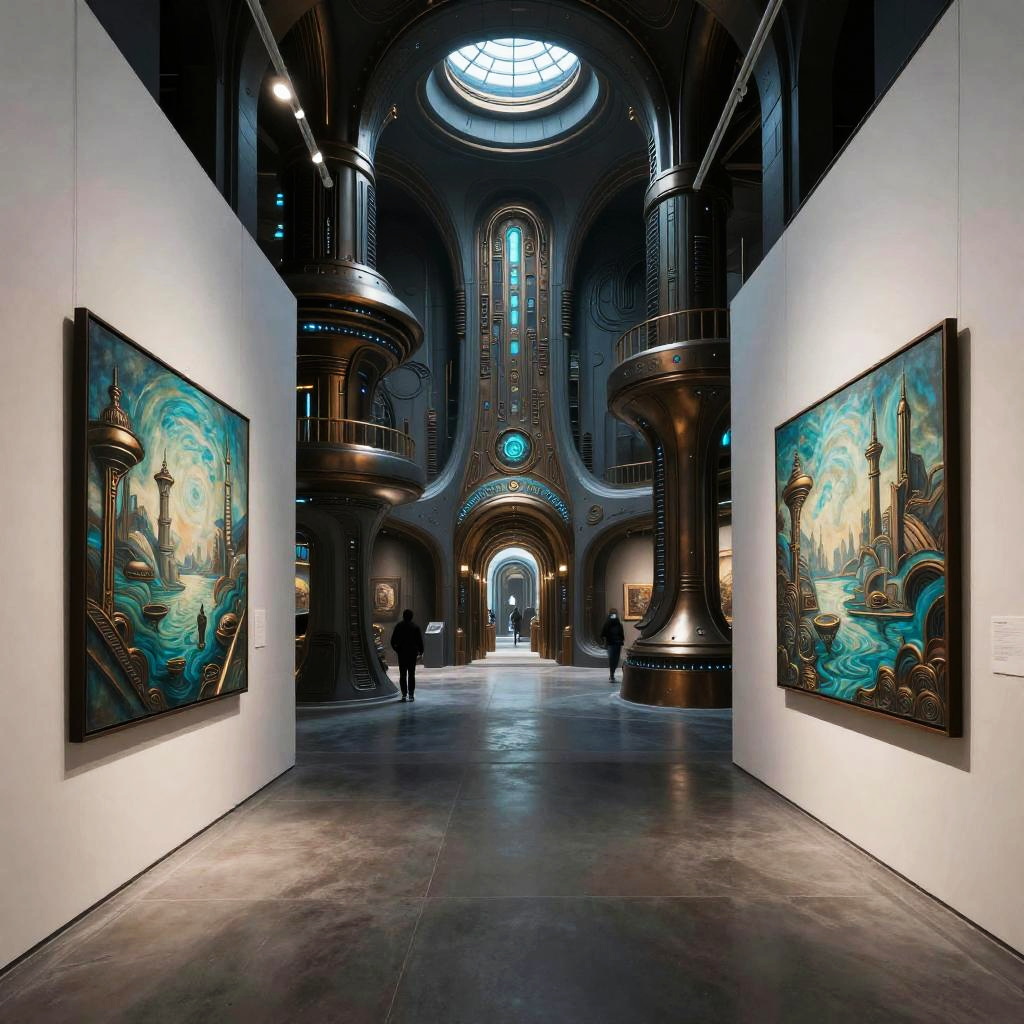 Cyberpunk Dystopian Art Gallery Interior