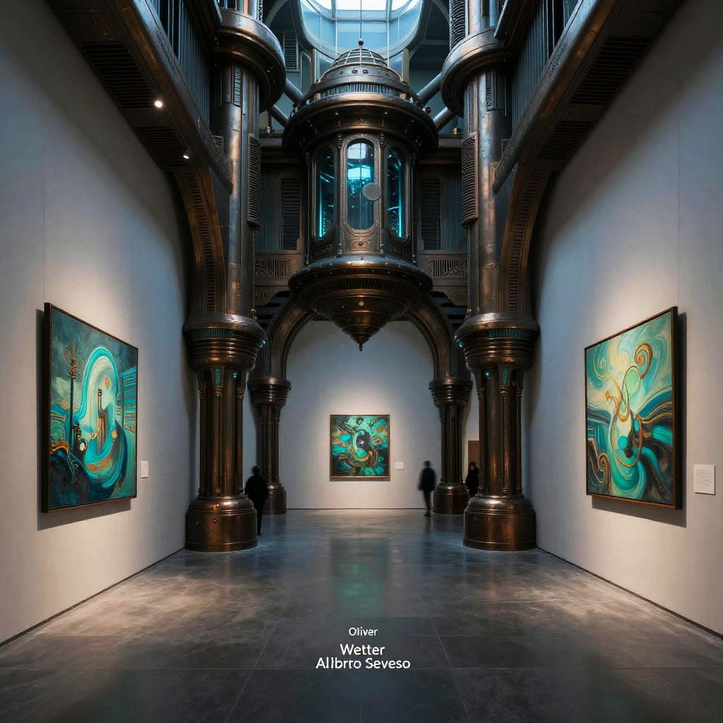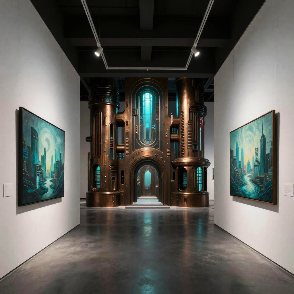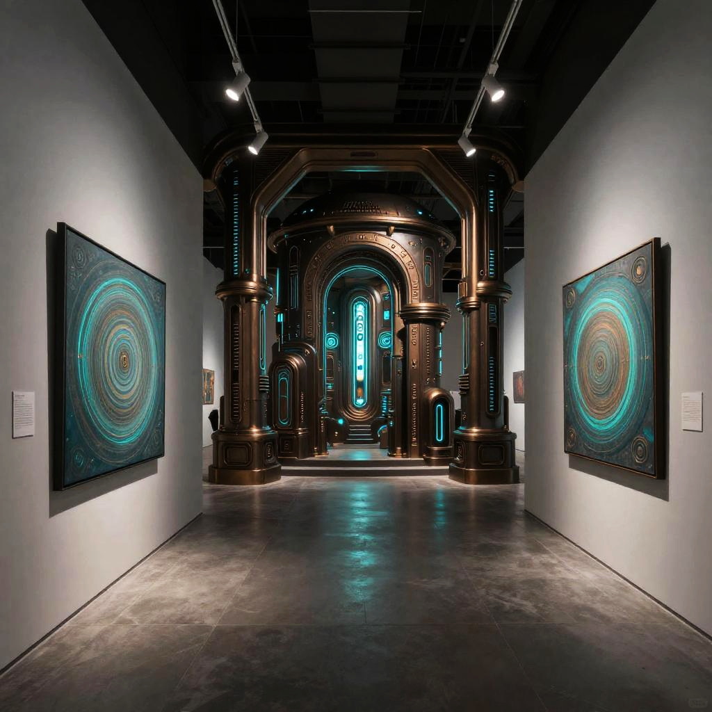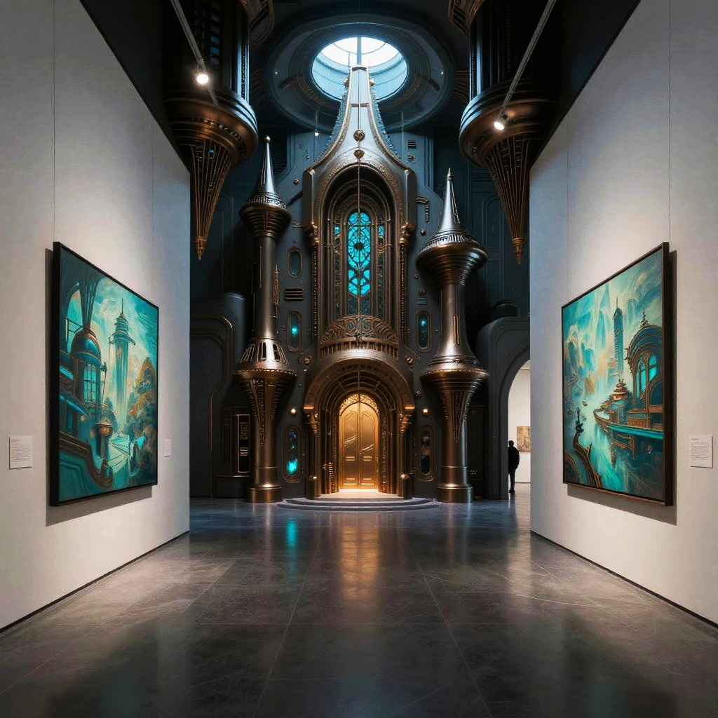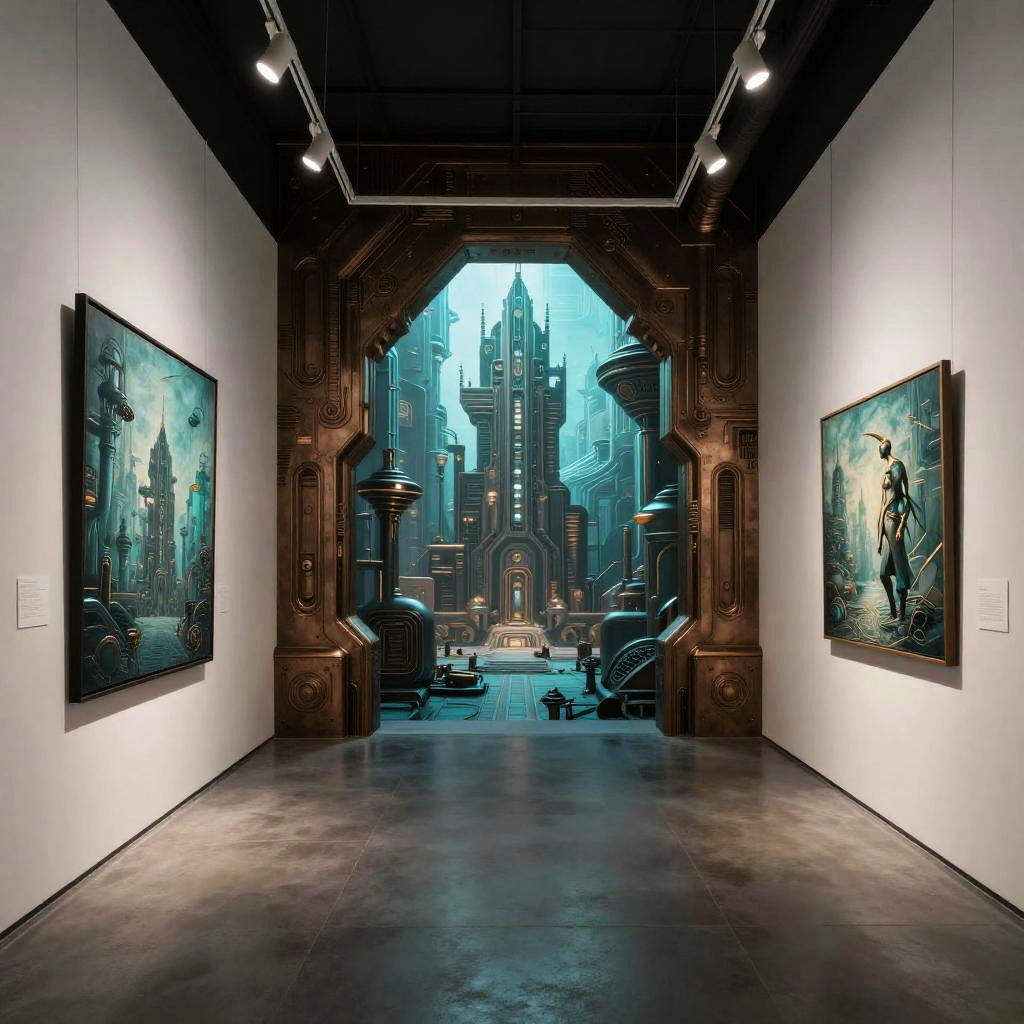 Cyberpunk Dystopian Art Gallery Interior