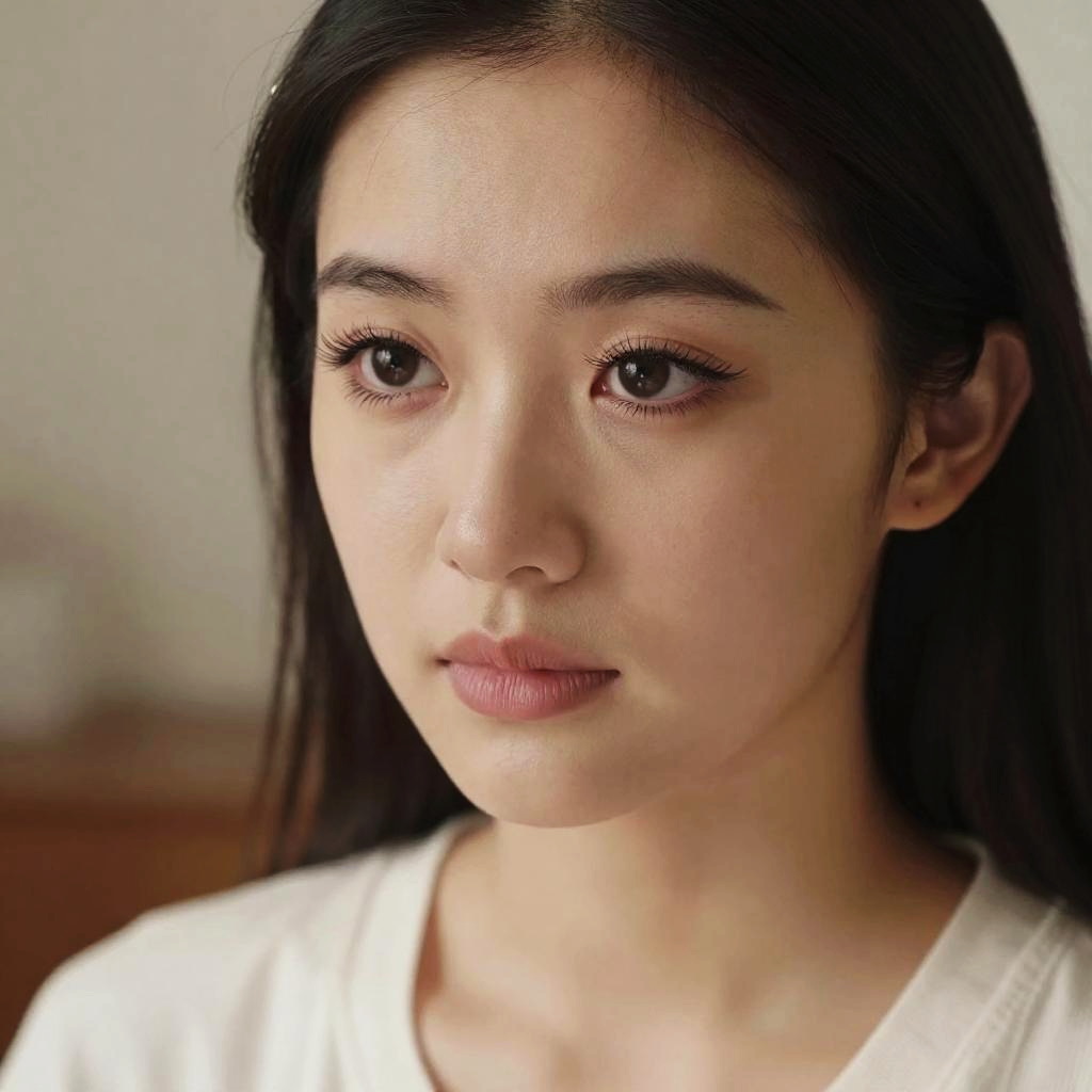 Back view, back view, (looking back:1.2), face focus and (upper body) and Detailed eyelashes and mascara and detailed facial features and Detailed and (wear home clothes) and (masterpiece:1.2) and (best quality:1.2) and (photorealistic:1.4) and (Realistic:1.4) and Detailed Skin Textures and detailed skin pores and high skin detail and solo