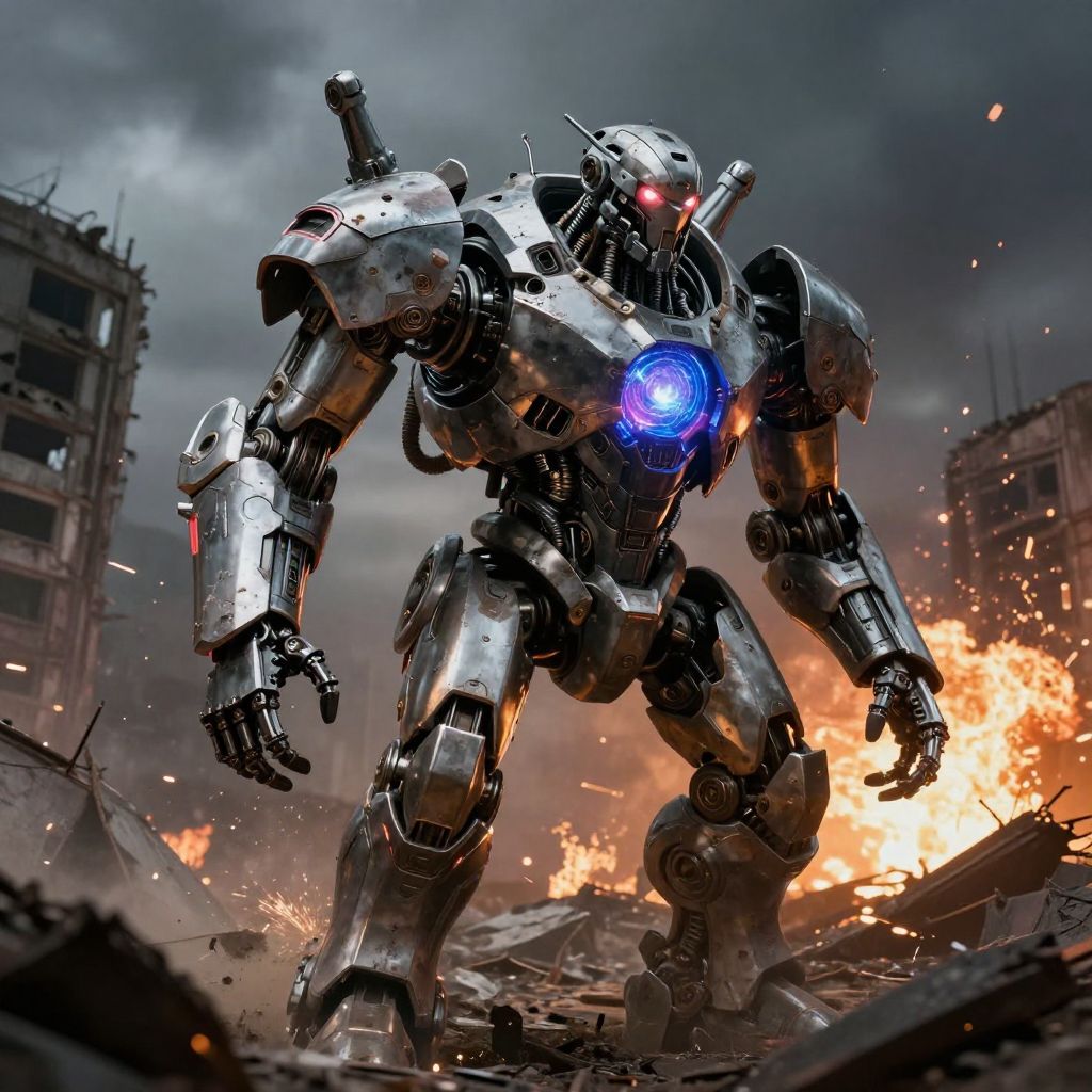 Image merge AI creating a hybrid creature by combining natural animals with mechanical elements, highly detailed textures, cyberpunk atmosphere, glowing neon accents, detailed environment showcasing a blend of organic and synthetic features in a dynamic pose.