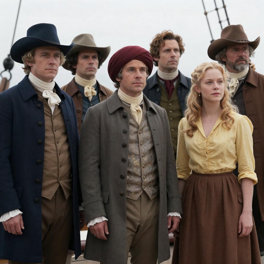Three Men in Historical Costumes Outdoors