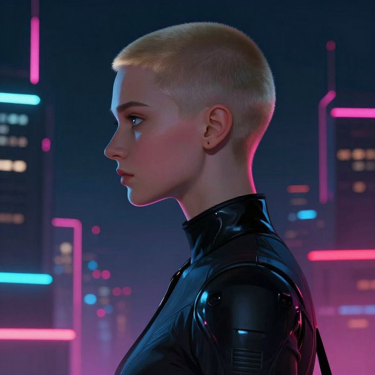 Picture a surreal fusion of photorealistic digital artistry and dystopian cityscape, where towering skyscrapers rise from the smoggy atmosphere, reminiscent of an urban jungle teeming with life. From a 'bug's-eye view', intricate details come to life as you navigate through this futuristic metropolis. In the foreground, an abstract portrait of a woman with shimmering, iridescent hair and piercing blue eyes captures the essence of humanity amidst technological marvels, creating a scene that evokes both wonder and unease in equal measure.