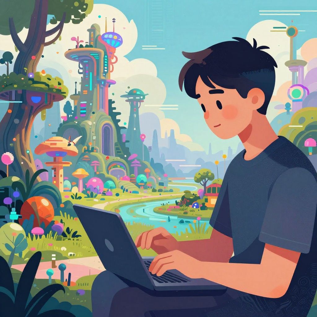 AI Artist Creating Cyber-Fantasy Landscape