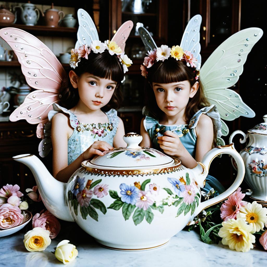 Enchanting Fairies in a Floral Teapot