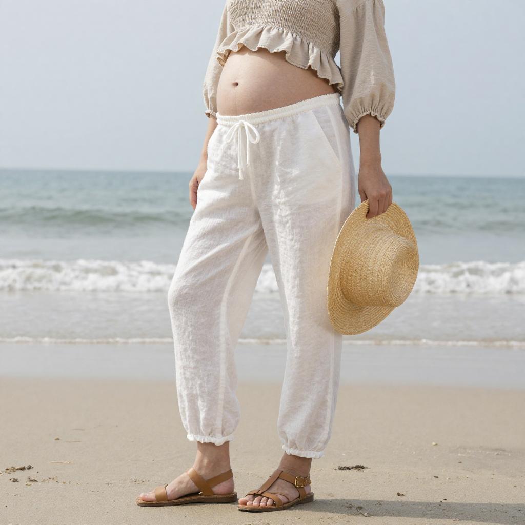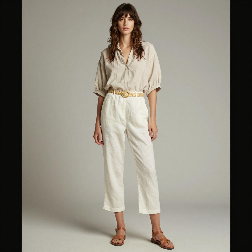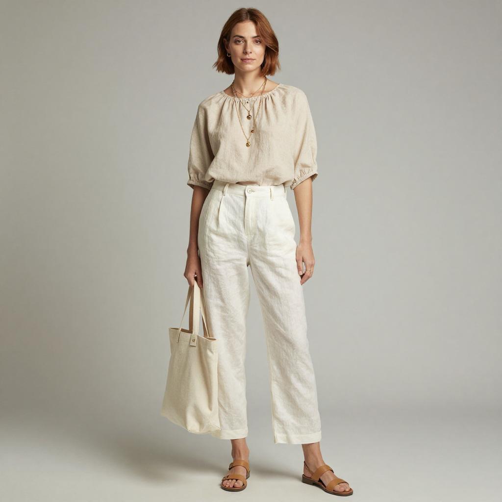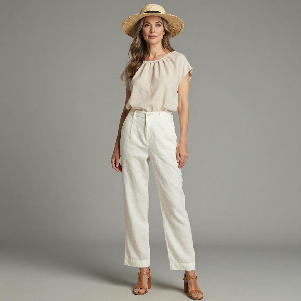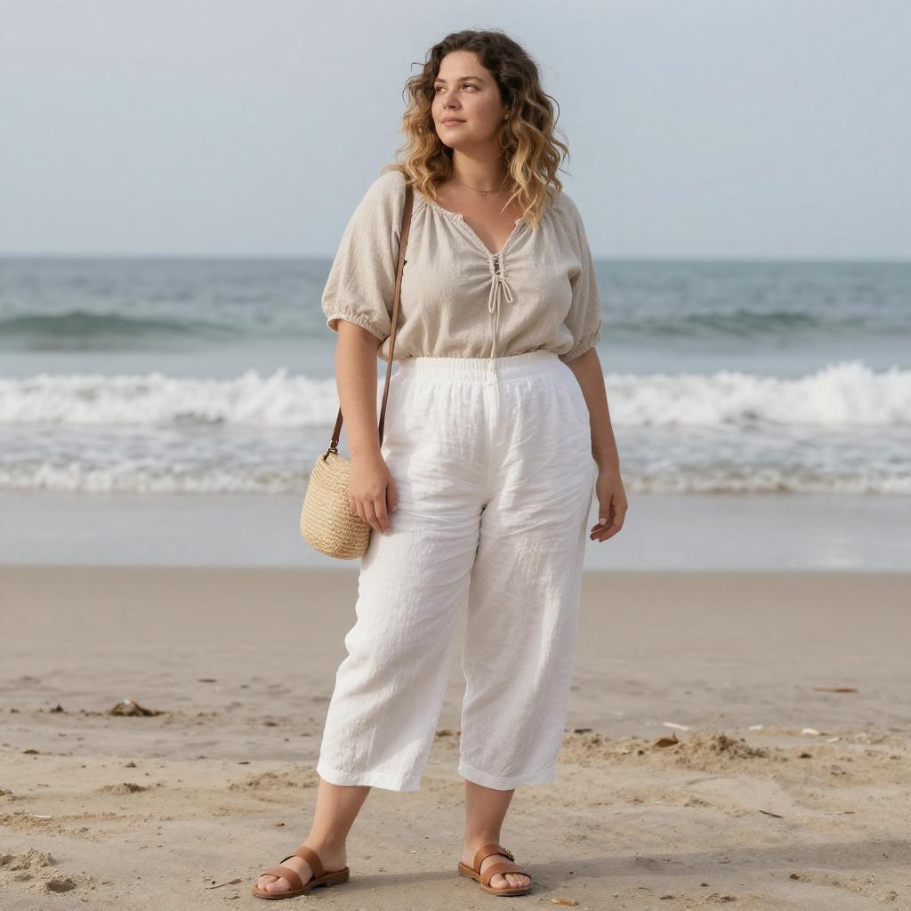 Stylish Beachside Woman in Linen Outfit
