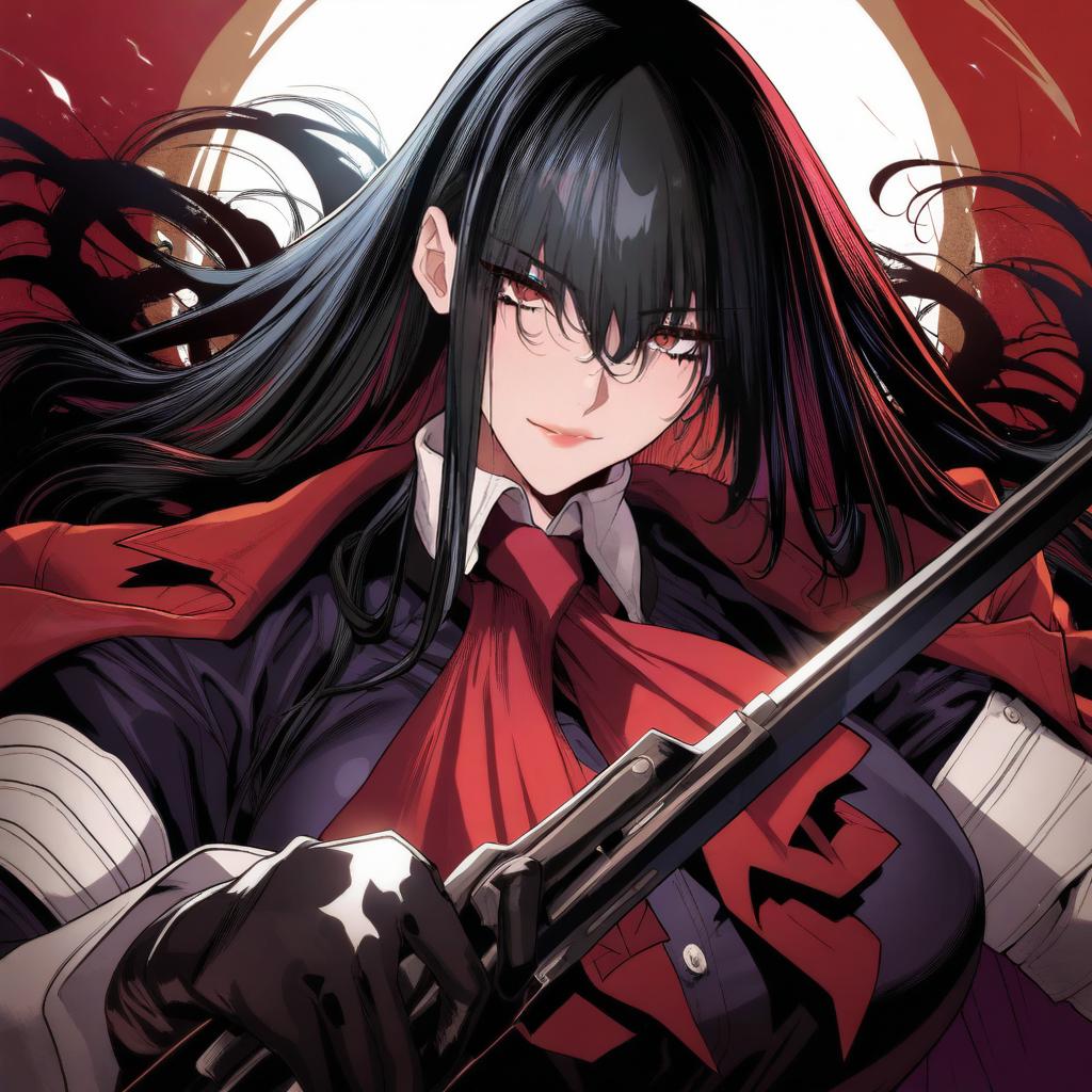 Alucard (hellsing), hellsing, 1boy, red eyes, black hair, long hair, vampire, by artist minase (takaoka nanase), animagine