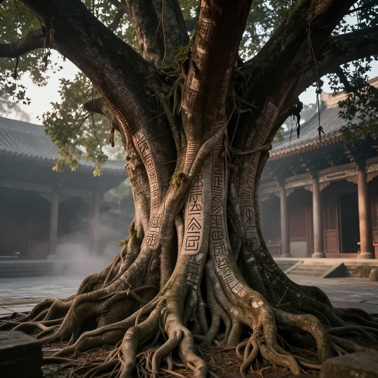 Sacred Tree in Ancient Temple Courtyard