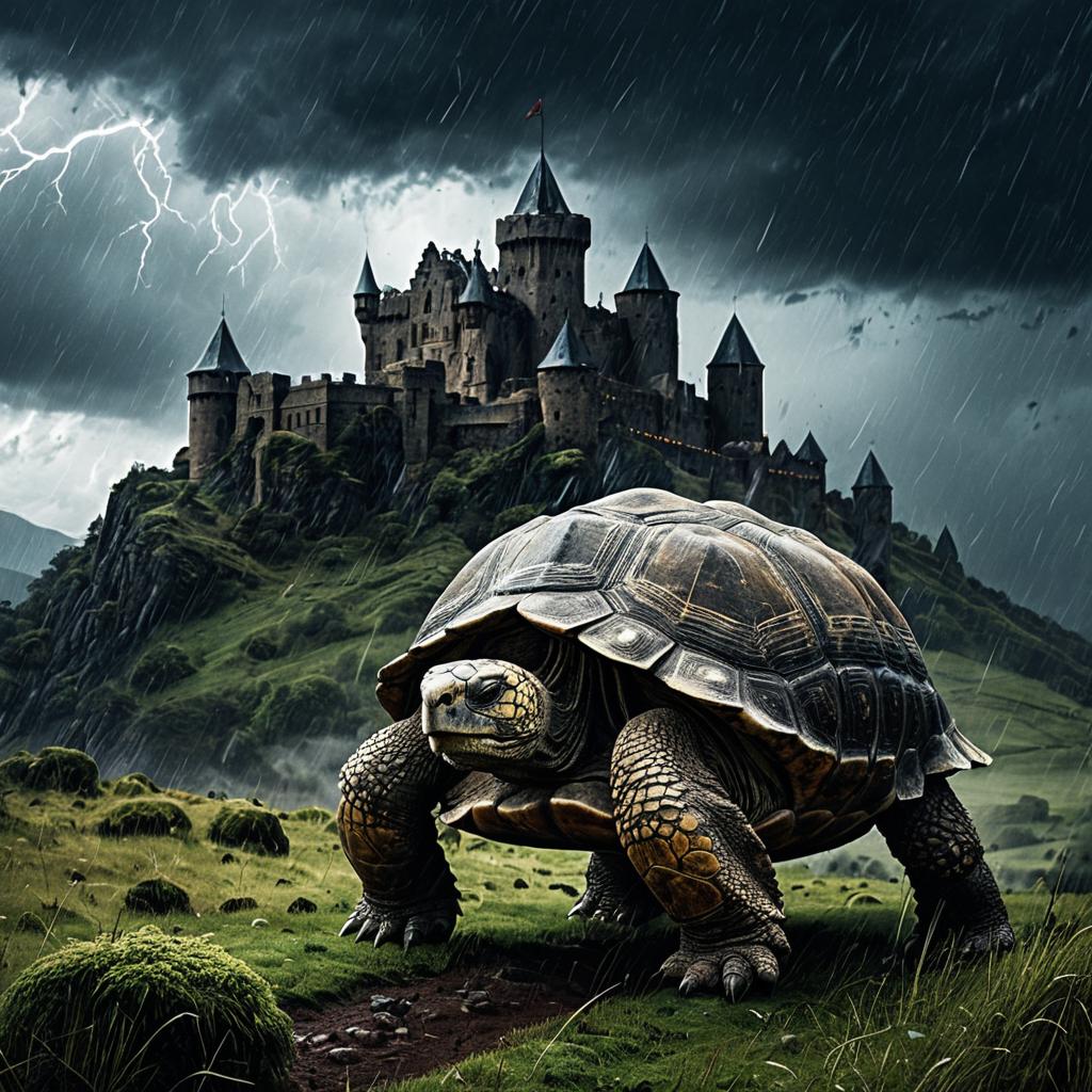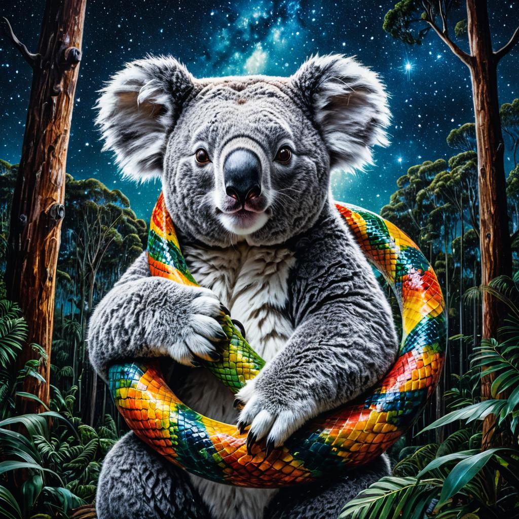 Giant Chameleon in Rainforest with Glowing Butterflies