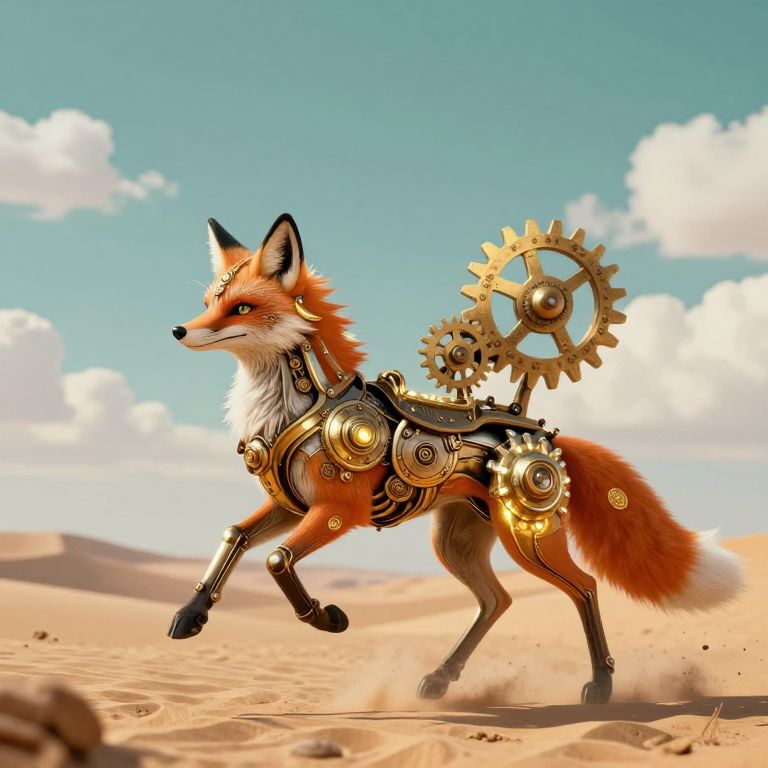 Majestic Steampunk Fox in Desert