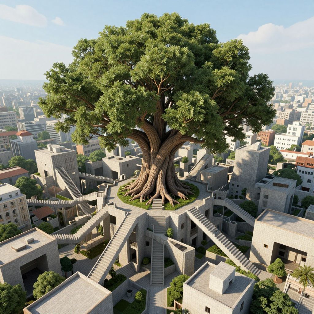 Escher-Inspired Impossible Architecture Tree