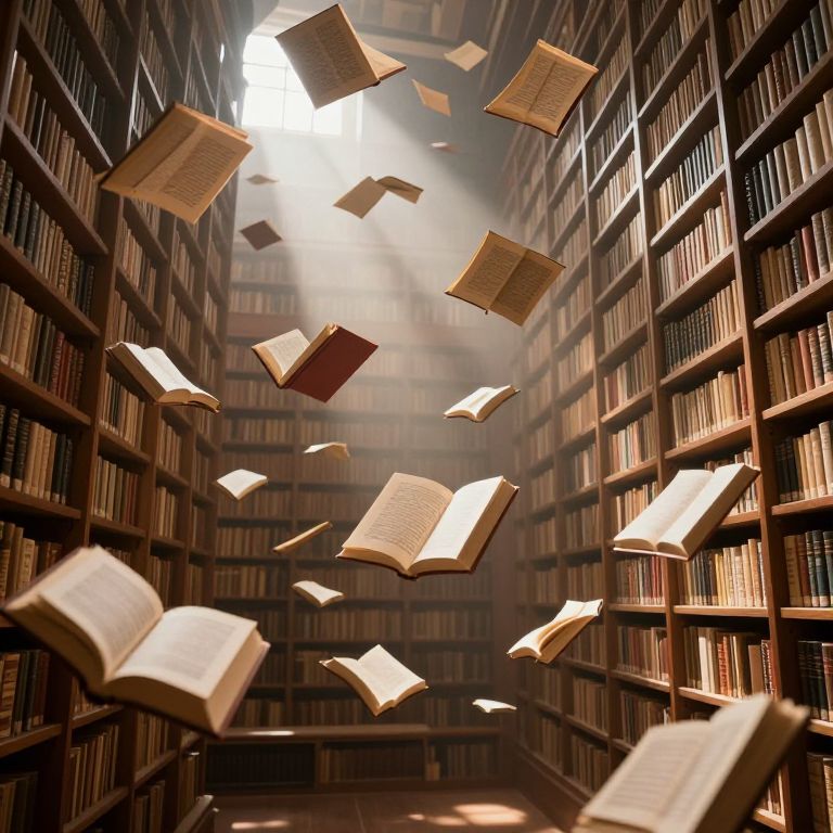 In a boundless library suspended in ethereal light, floating books open to reveal living narratives that twist into new forms, embodying the infinite dance between knowledge and imagination, where every page whispered secrets of freedom and wonder.