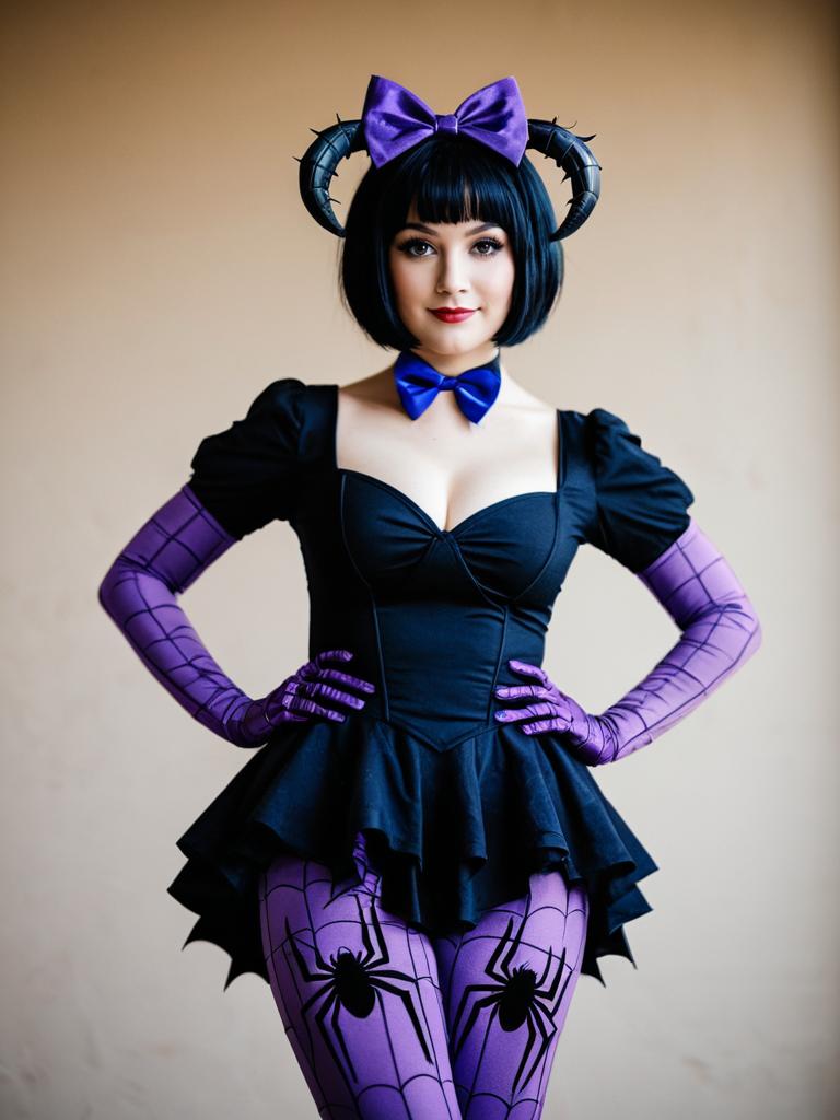 Lifestyle costume photo of Muffet. Cosplay clothes