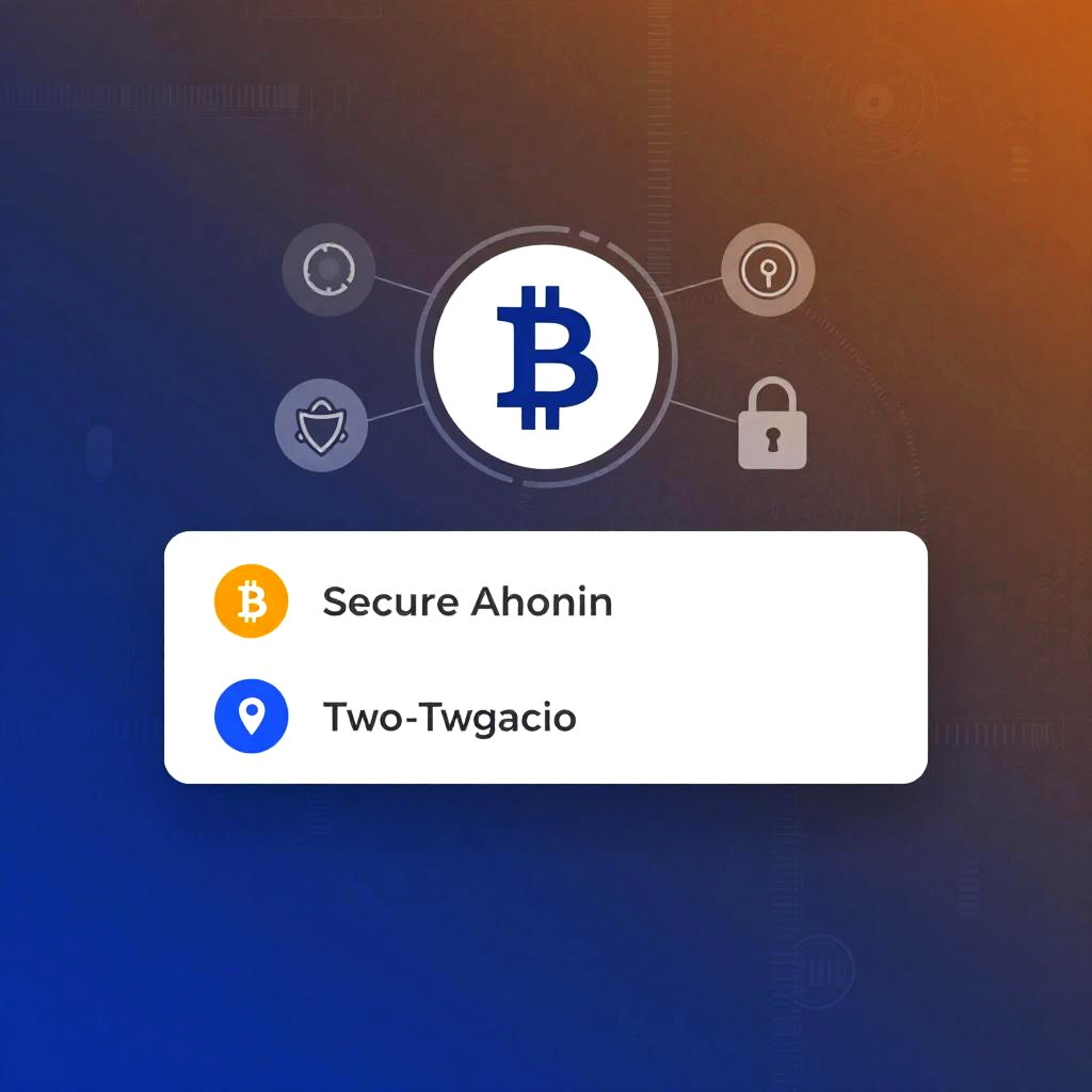 Bitcoin screenshot illustrating a secure login screen with two-factor authentication prompt, enhanced security icons, futuristic cyber security theme with tech-inspired background, blue and orange gradient lighting, crisp and professional user interface