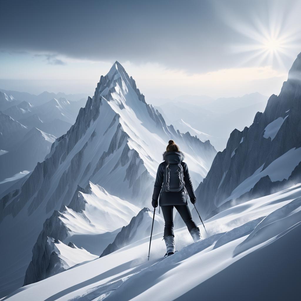 A snow selkie on a path in snowy mountains, rendered with ultra-realistic graphics, octane render, depth of field, highly detailed and cinematic.