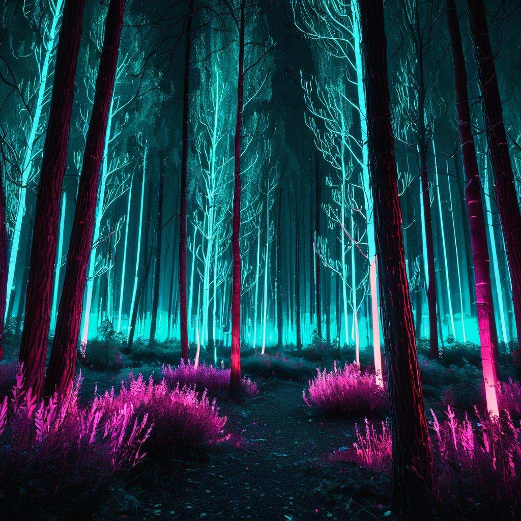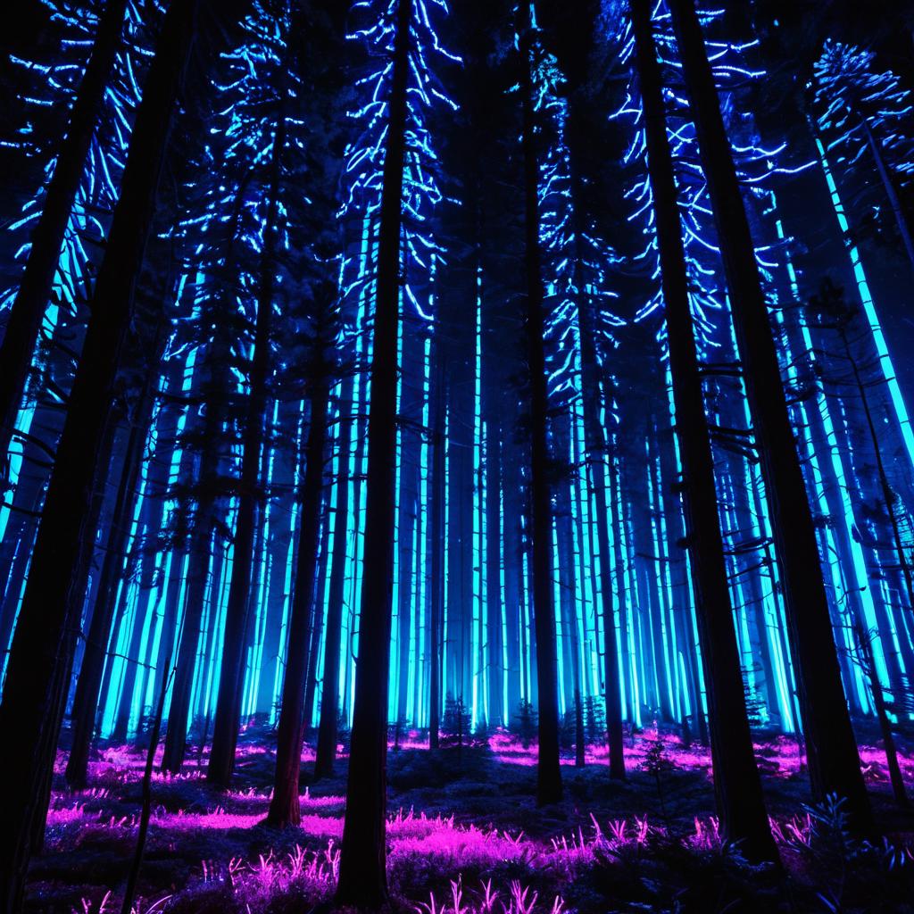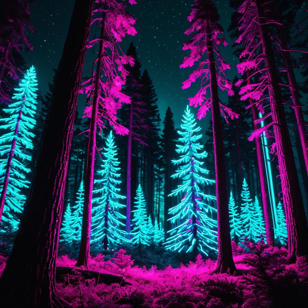 Neon Pine Forest Rave at Night