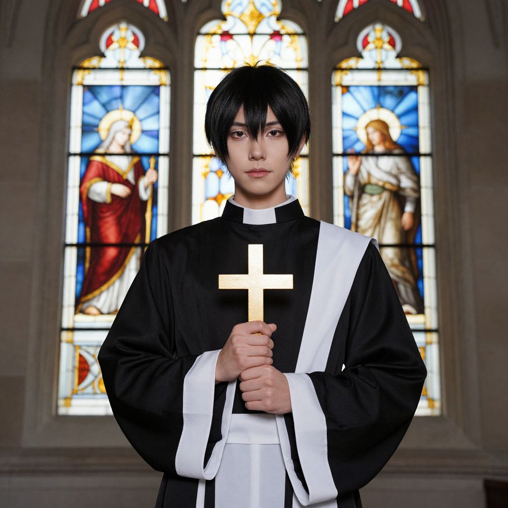 Boy in Priest Cosplay Costume