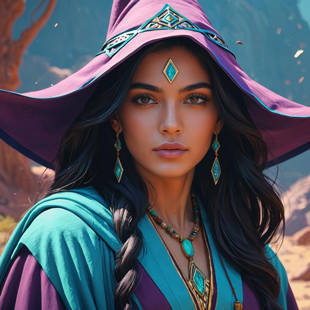 Sorceress in Purple and Teal Robes