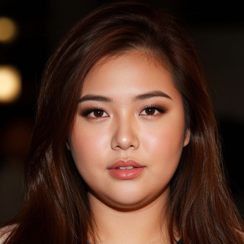 (((Full Shot)))+++, plus sized, asian, half body, centered, perfect brown eyes, fantastic face, beautiful latina, lipstick, beautiful look, make up, elegant brown long hair, beautiful shiny (((big lips)))+++, casual attire, night blurry bokeh lights background, ultrafocus, face illuminated, face detailed, shaggy pined up hair, rich in detail, 16k resolution, dry brush, brush strokes, Miki Asai macro photography, hyper detailed, Trending on artstation, sharp focus, studio photo, complicated details, highly detailed, by greg rutkowski, high-resolution, realistic, Hyperrealistic, Hyperdetailed, High definition, (((half body)))+++