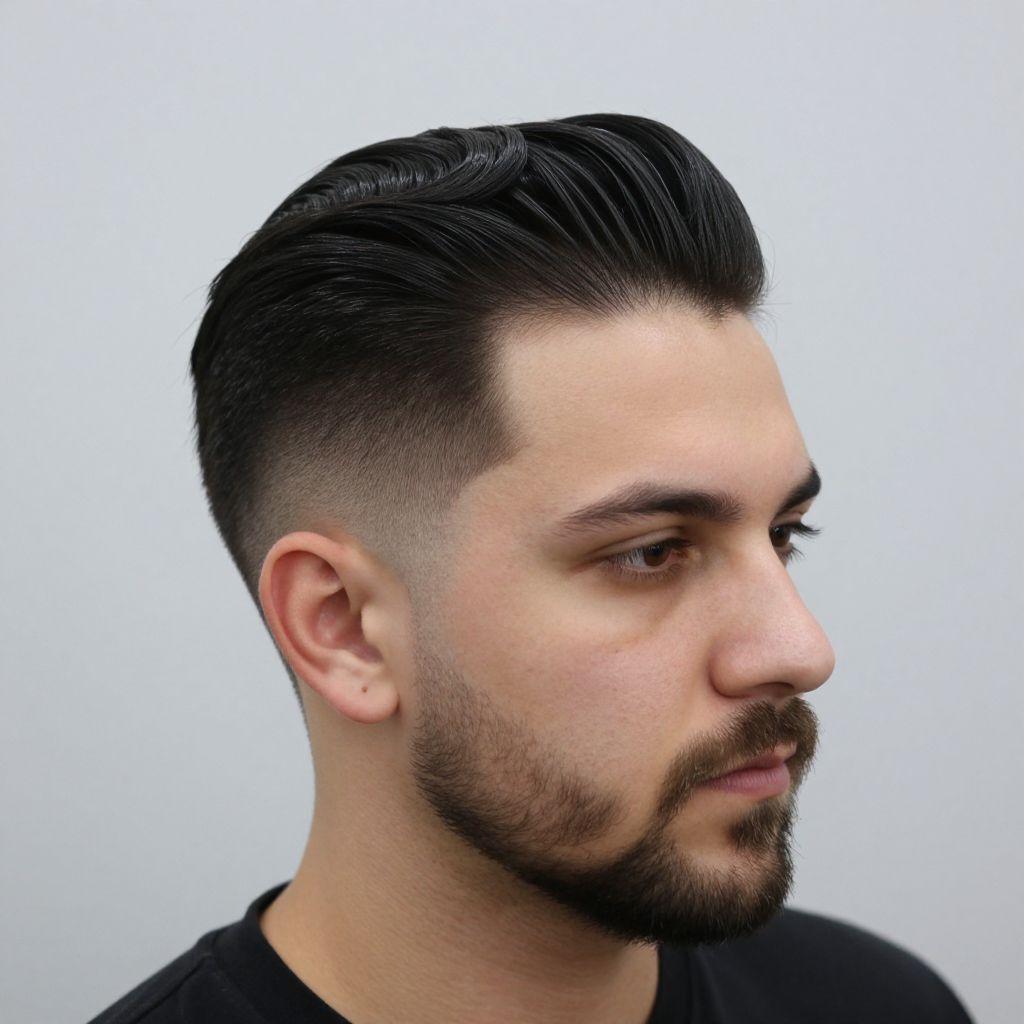 Stylish Slicked-Back Haircut with Beard