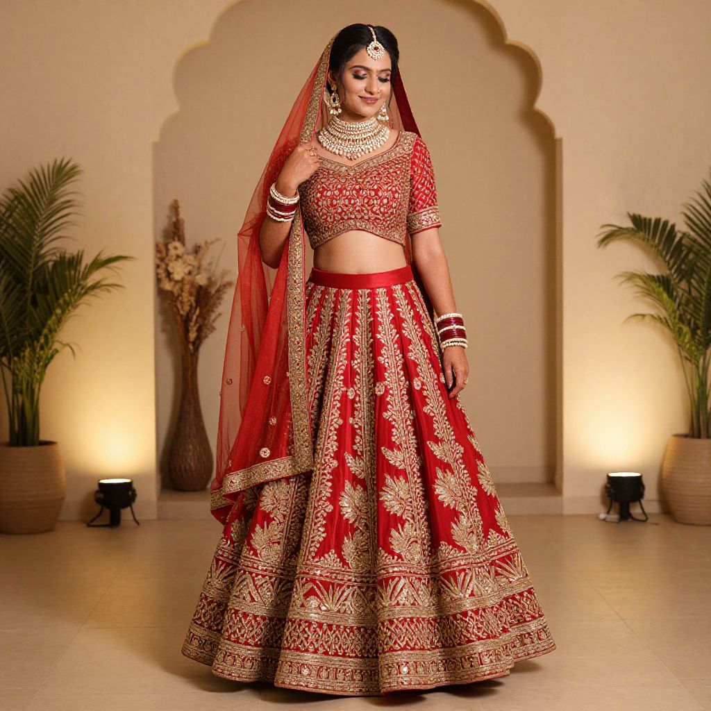 "Wedding Dress Choli, a woman in a red and white sari poses for a photo"