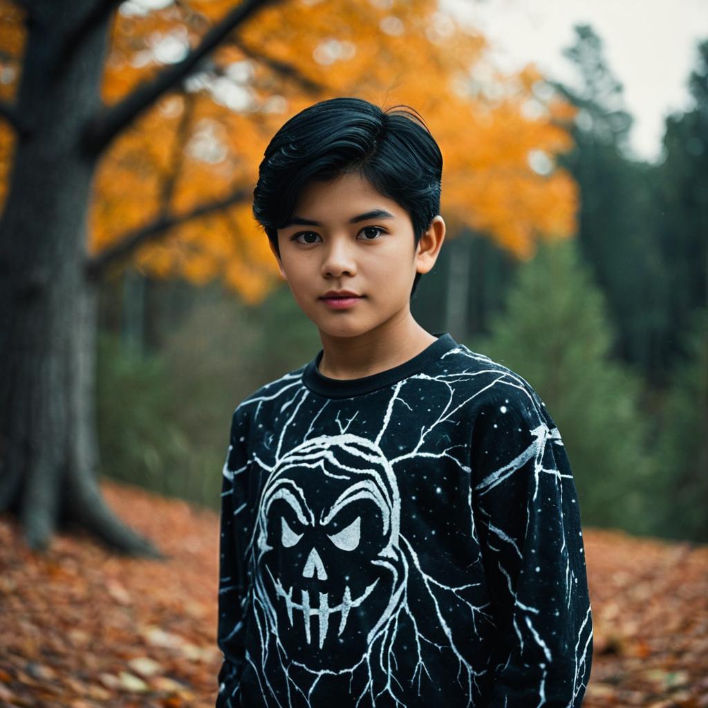 Teen Boy in Green Denim Jacket with Hood Outdoors