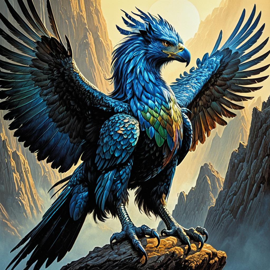 Ultra-Detailed Mythological Gryphon with Metallic Feathers