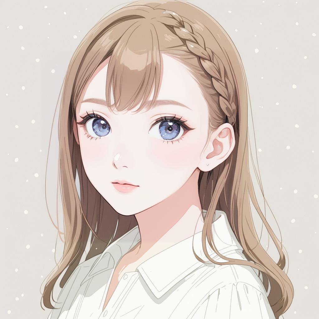 Hanasato minori, project sekai, 1girl, hair behind ear, grey eyes, eyelashes, brown hair, medium hair, long hair, swept bangs, braid, white shirt, dot nose, tareme, by artist haoro, anime