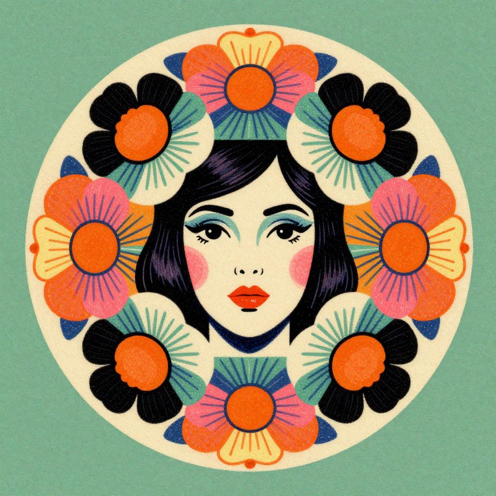 Embroidery Patch giant peach split in half has a baby inside it in the style of japanese woodblock print,