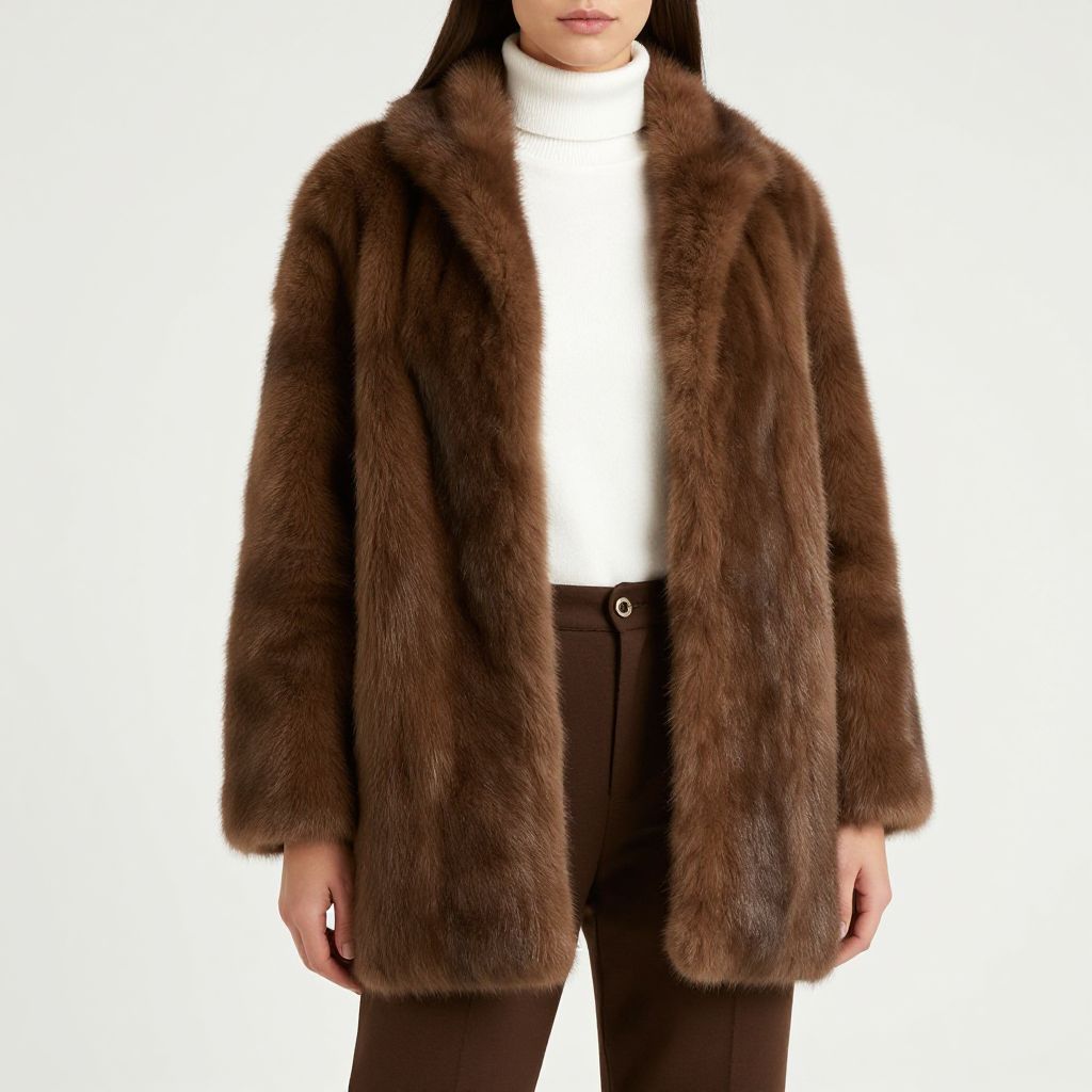 Stylish Female Model in Brown Fur Coat