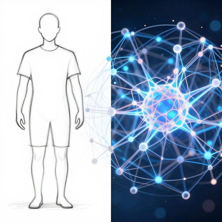 Sketch to AI transition, side-by-side image showing a simple hand-drawn line sketch morphing into a complex AI neural network visualization, blending traditional art and cutting-edge technology, detailed, bright digital effects