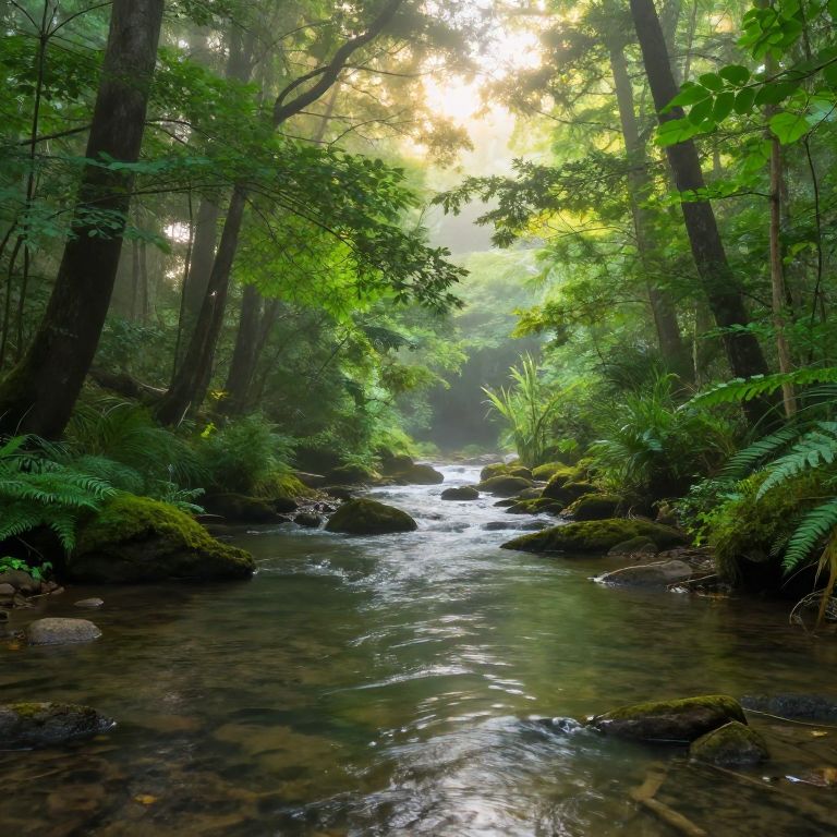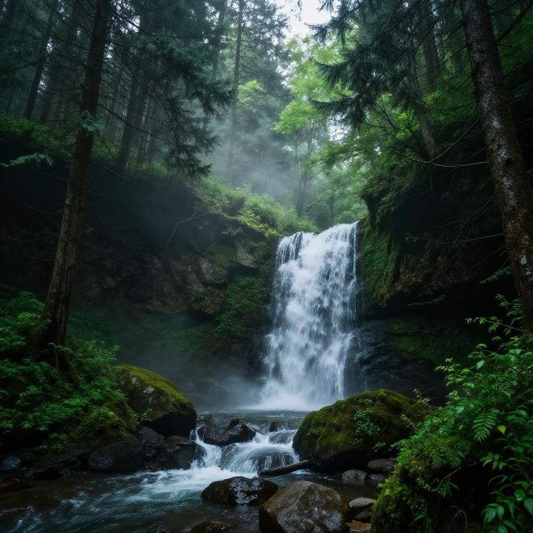 Sturdy Wooden Bridge in Misty Forest