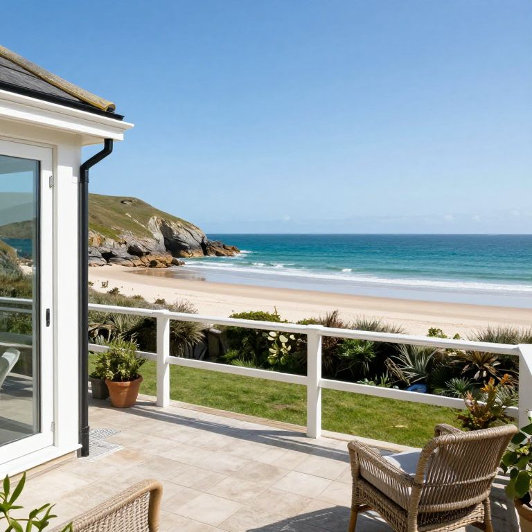 The terrace looking out to sea at Buddha Beach House in Cornwall