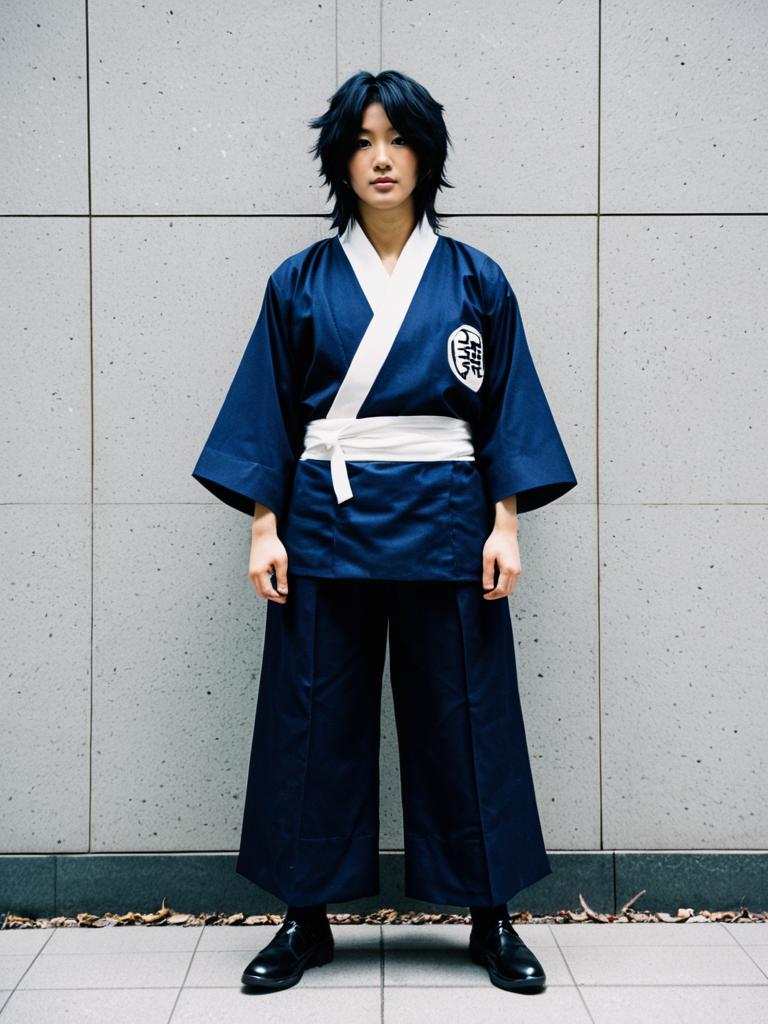 Photo-realistic cosplay photo of person in aizawa yuuichi costume. . full body shot