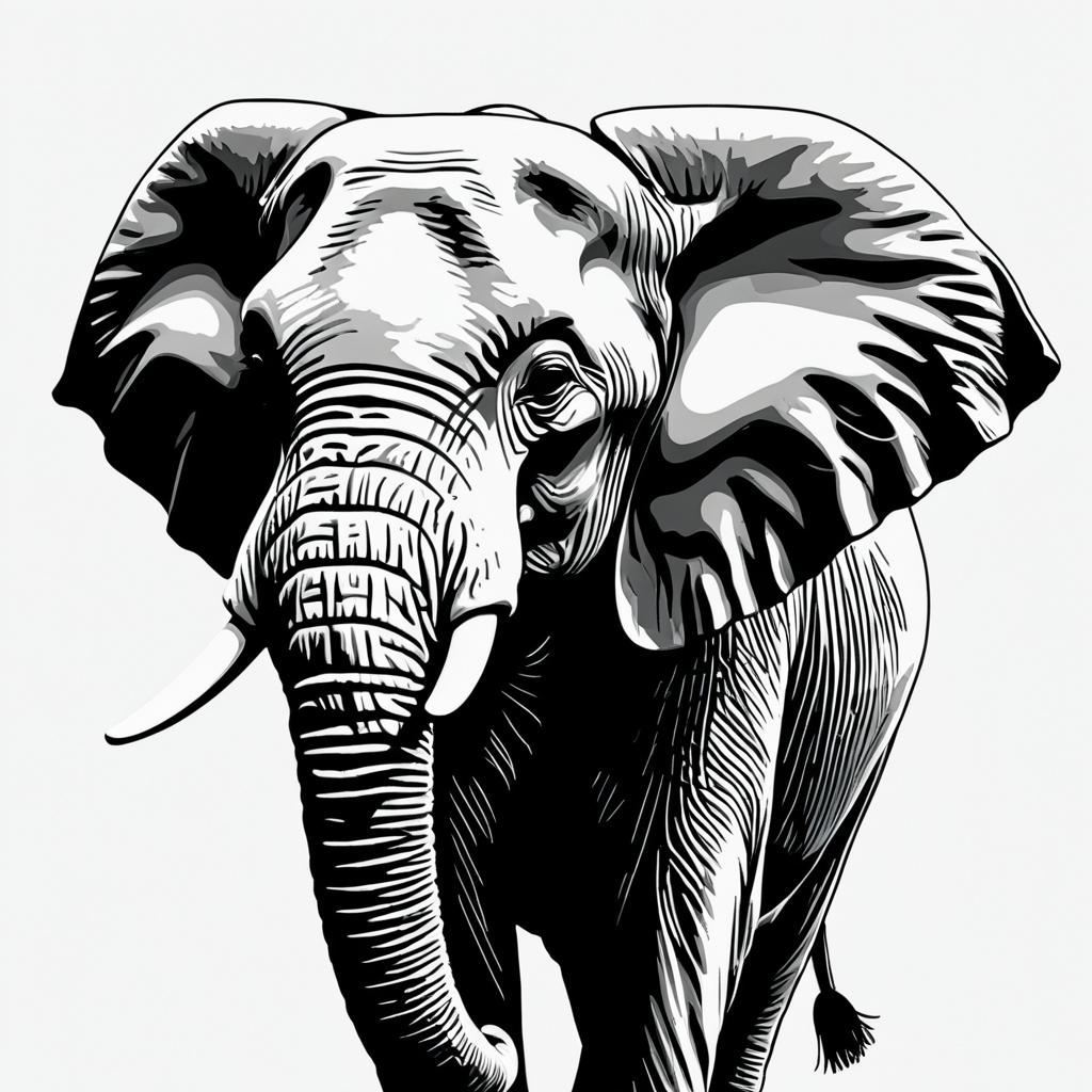 Watercolor hand-drawn illustration of a gentle elephant, with a soft lavender body, rose gold tusks, gentle smile, set against a white background, simple and hopeful aesthetic.