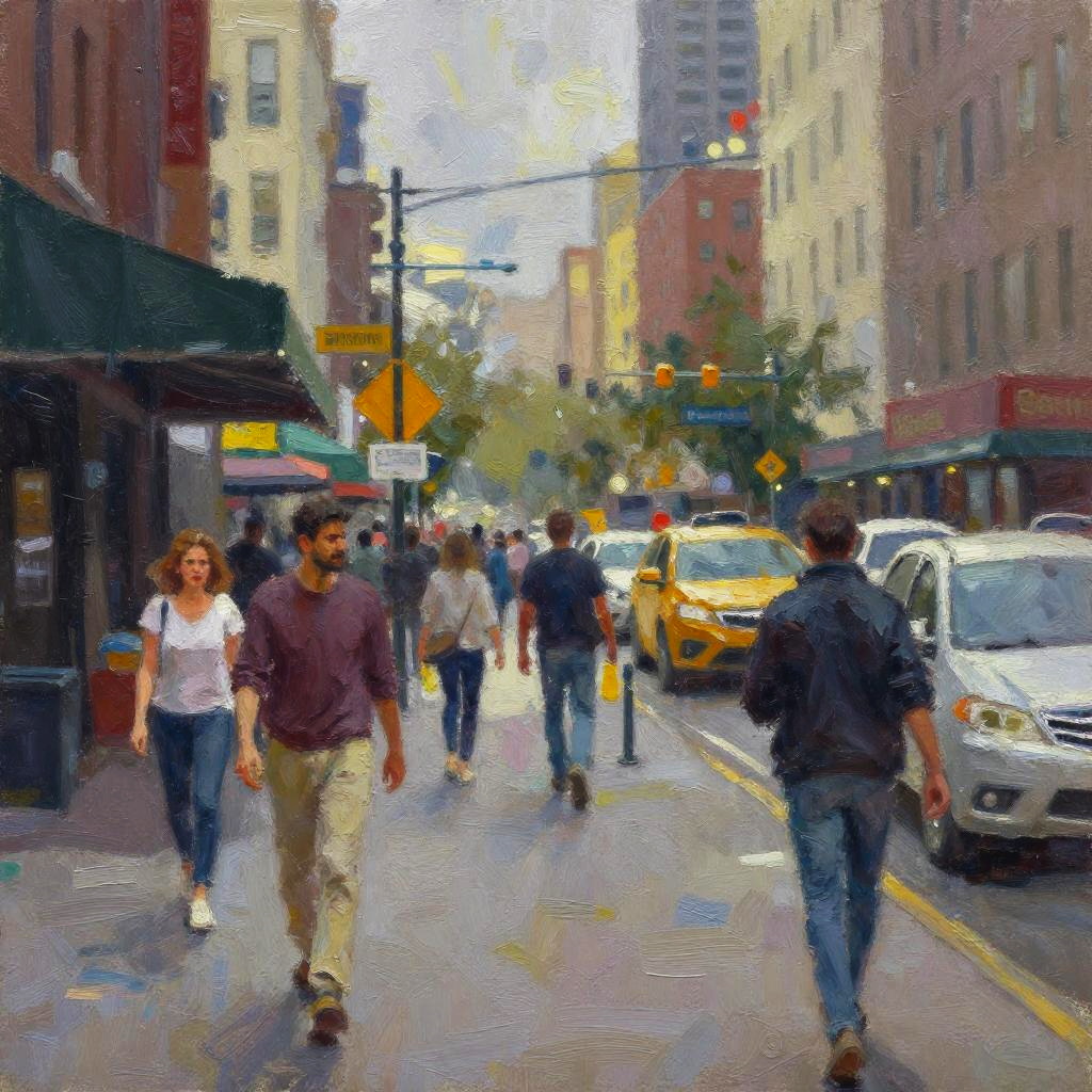 Vibrant Oil Painting of City Street