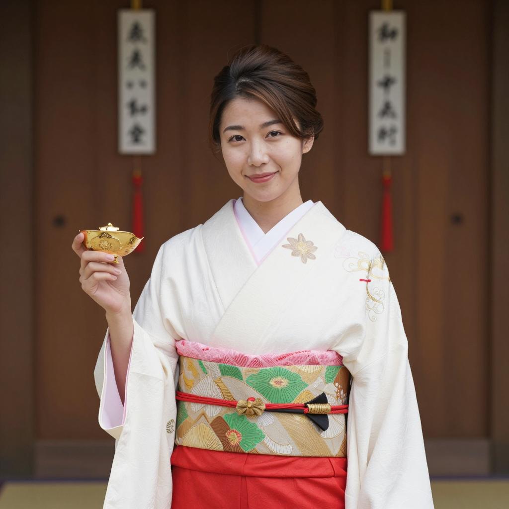 Japanese Woman in Traditional Shrine Attire