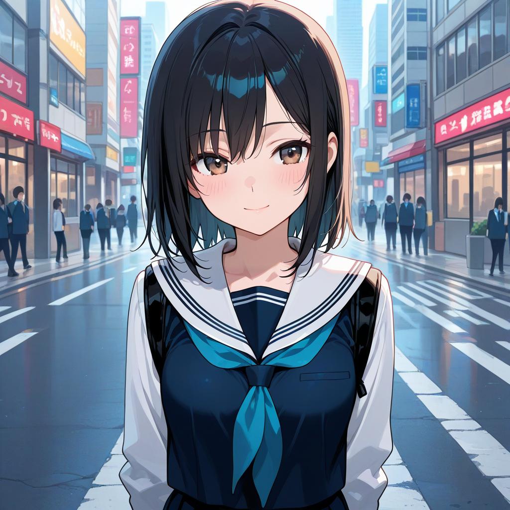 ((masterpiece, best quality)), ((1girl)), (1girl:1), [car], solo, (girl stand in front of car), sitting, sidelocks, aqua eyes, bangs, hair between eyes, looking at viewer, long sleeves, bright, neon lights, night, midnight, city, cyberpunk, light, [motor vehicle], [ground vehicle], sports car, black sailor collar, black serafuku, long hair, black hair, black thighhighs, Pleated skirt, brown footwear, vehicle focus