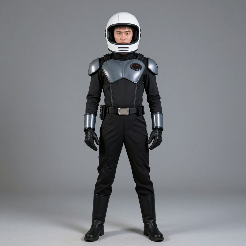 Rocketeer costume, helmet, solo, gloves, 1boy, male focus, standing, boots, black gloves, looking at viewer, closed mouth, arms at sides