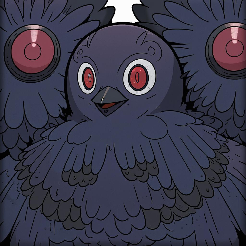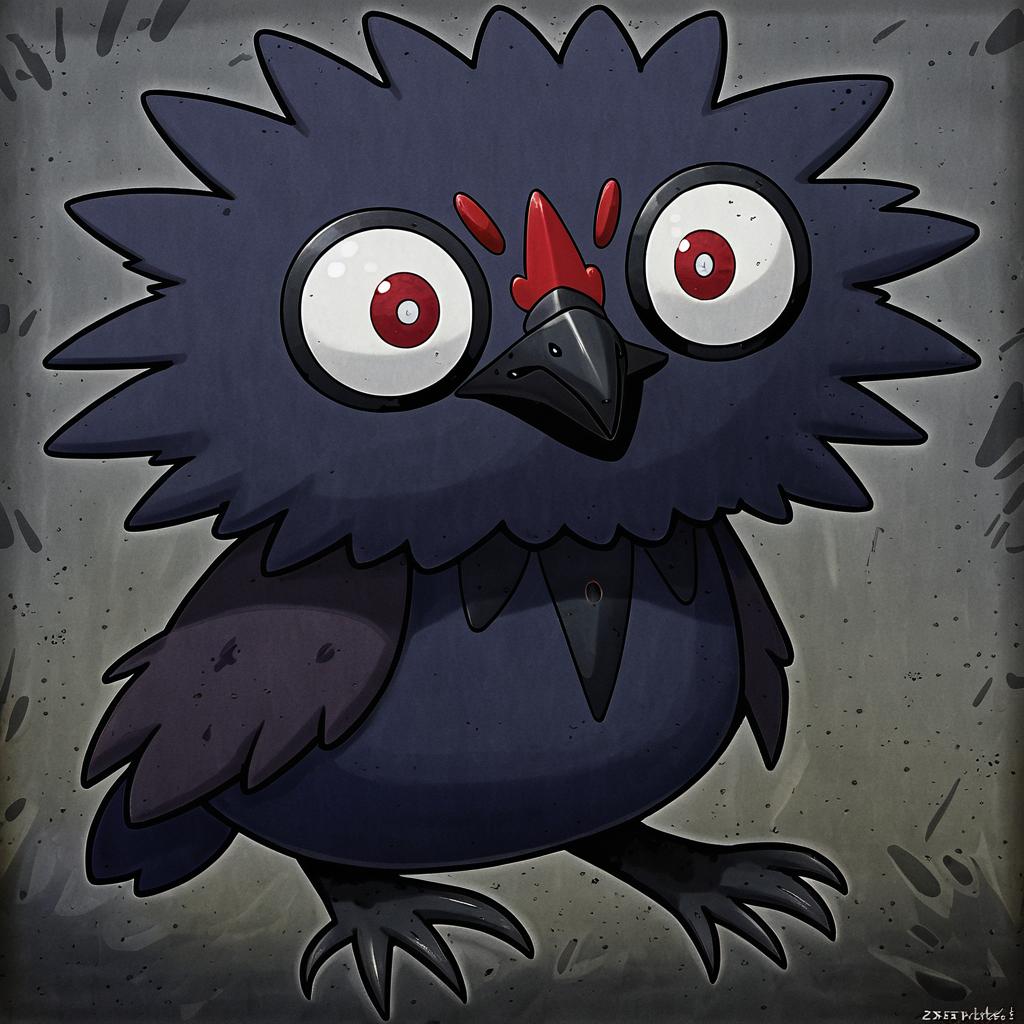 Murkrow, pokemon, no humans, red eyes, white pupils, pokemon (creature), bird, claws, by artist qixia, anime