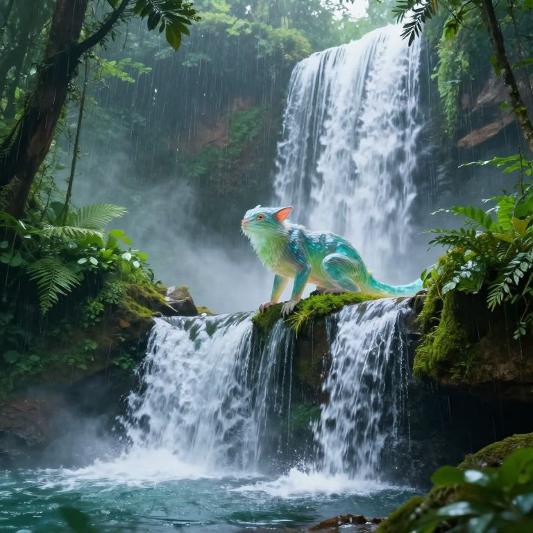 A mesmerizing portrait of an ethereal being with iridescent wings draws our attention from an unconventional worm's eye perspective. This enigmatic creature perches majestically upon a weathered stone platform amidst the lush, verdant foliage of an ancient forest, its glowing essence casting intricate patterns of light and shadow on the surrounding ferns. The creature's piercing gaze conveys a profound wisdom, inspiring both reverence and intrigue in the observer, as if beckoning them to enter this captivating, fantastical world.