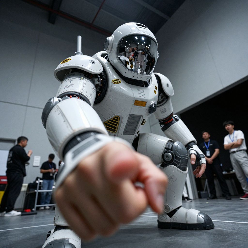 Note backstage photography in GCDS style, extreme low angle view from a zero gravity model pointing to the viewer POV, viewer perspective,