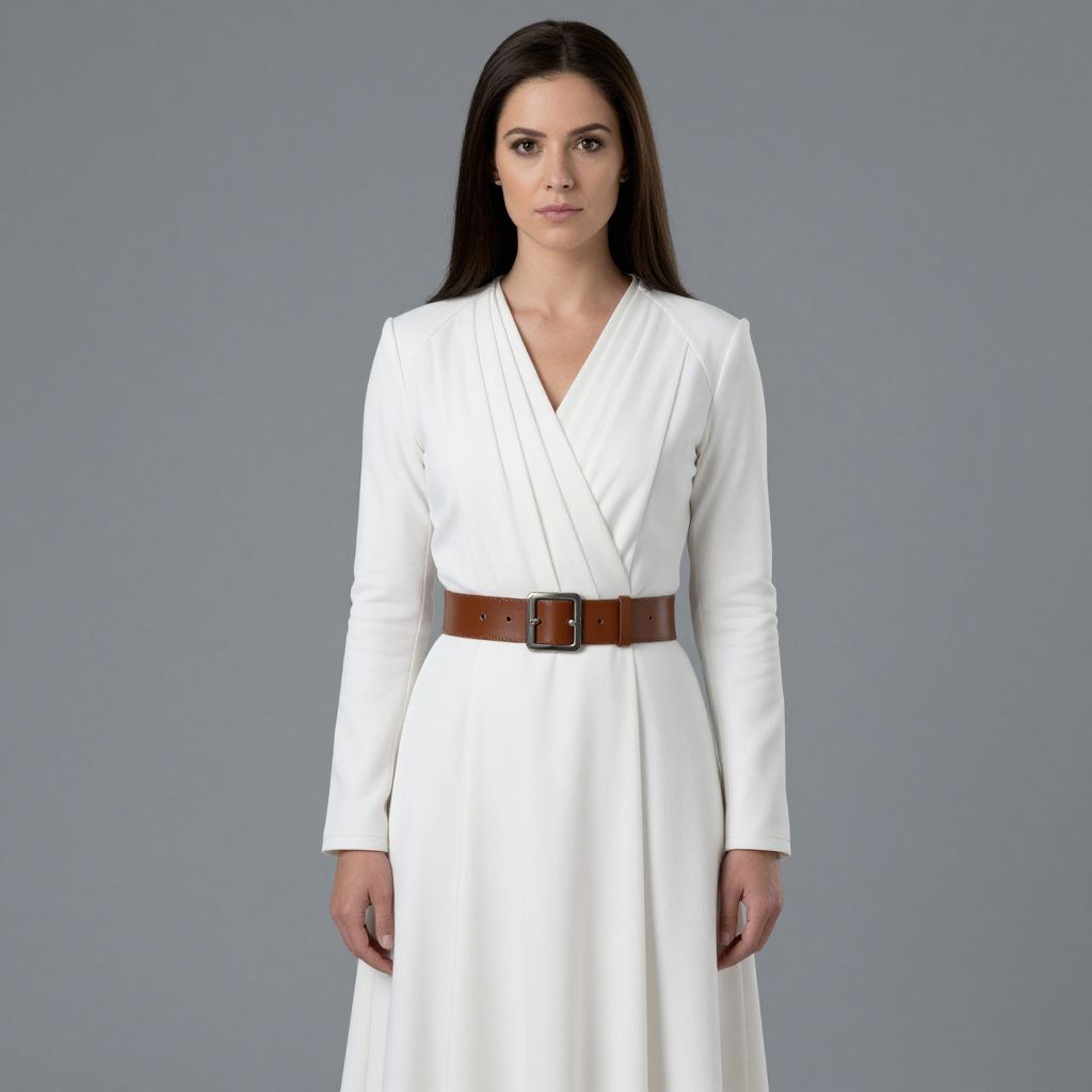 Padme Amidala White Dress Costume, a woman in a white dress and a brown belt